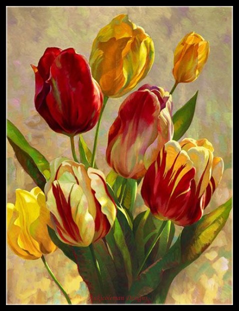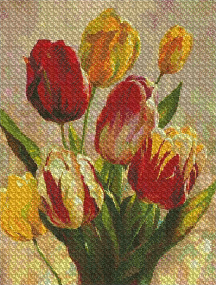 Fresh Tulips - Counted Cross Stitch Patterns Embroidery Crafts Needlework DIY Chart DMC Color