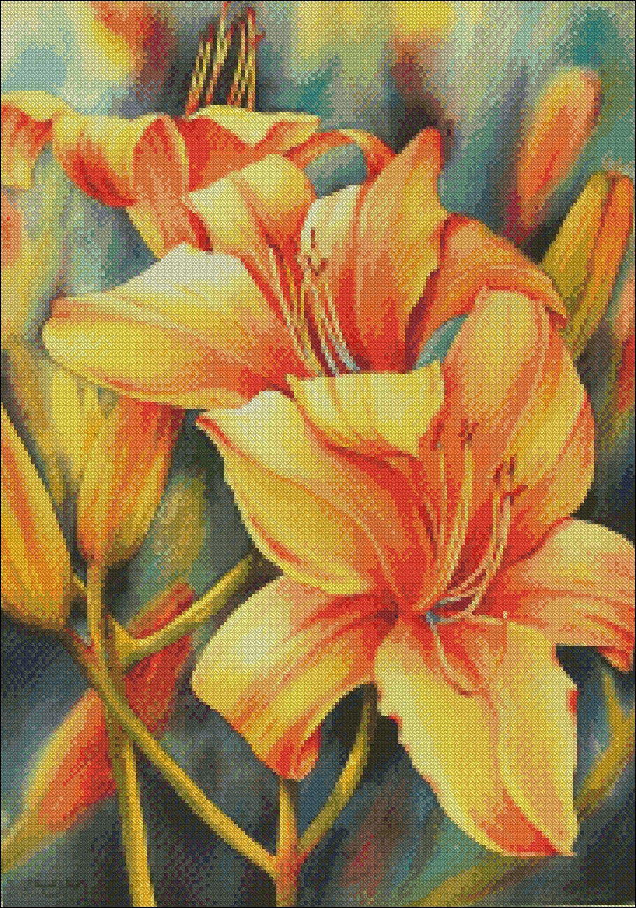 Day Lilies - Counted Cross Stitch Patterns Embroidery Crafts Needlework DIY Chart DMC Color