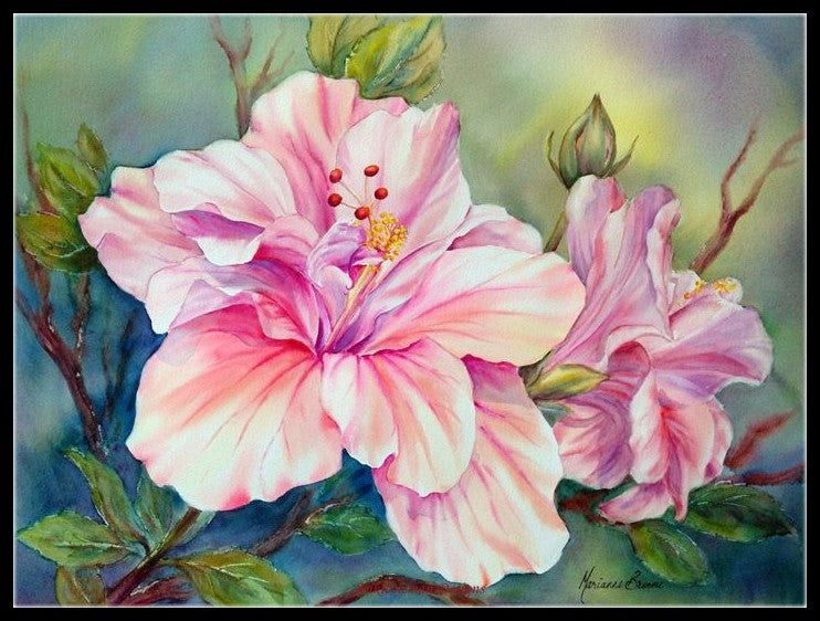 Double Hibiscus - Counted Cross Stitch Patterns Embroidery Crafts Needlework DIY Chart DMC Color