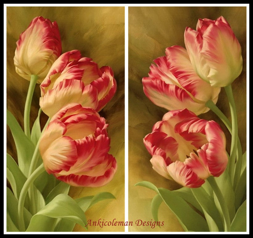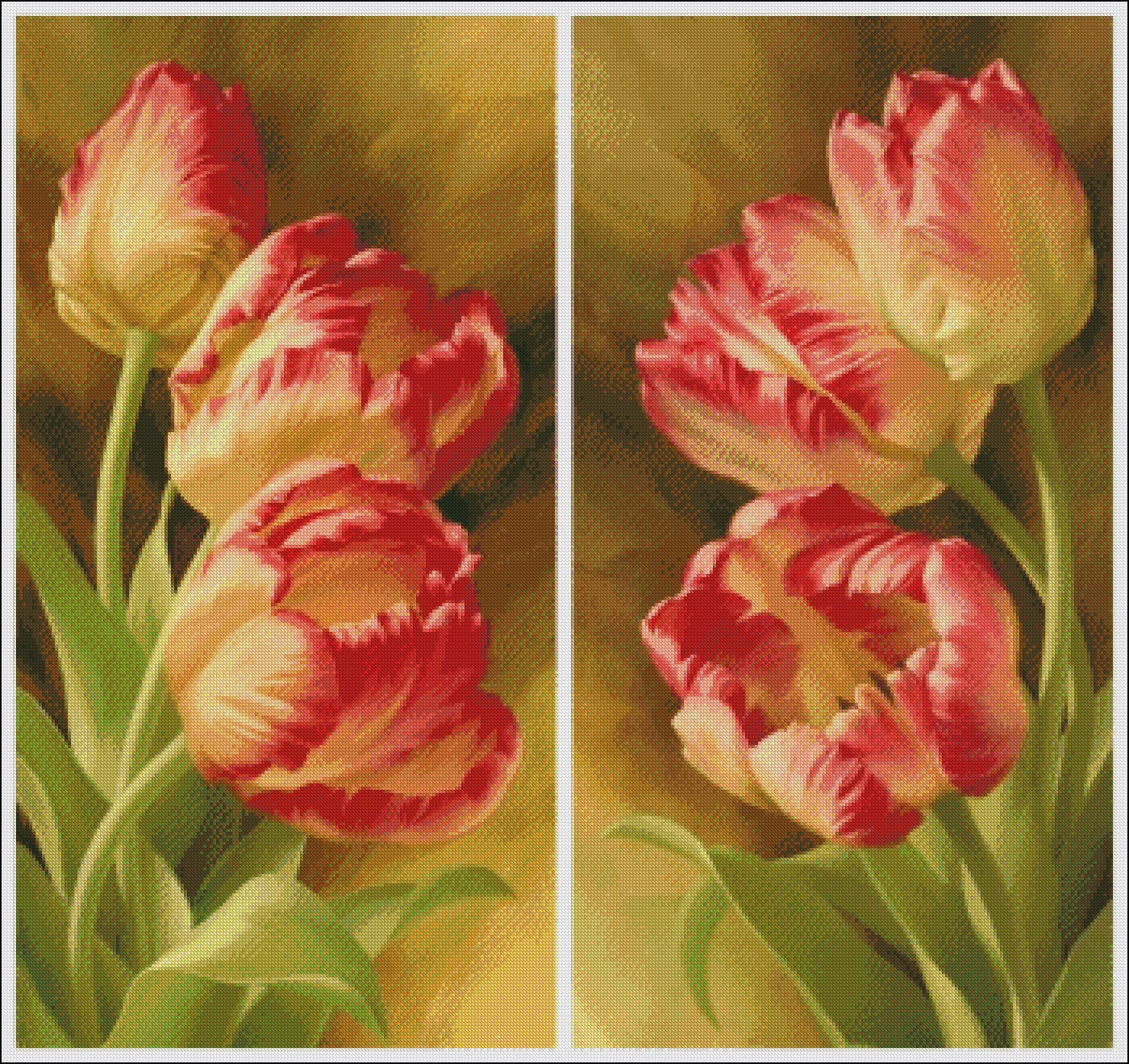 Double Tulips - Counted Cross Stitch Patterns Embroidery Crafts Needlework DIY Chart DMC Color