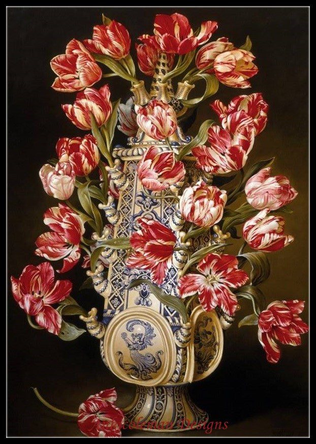 Dutch Tulip Vase - Counted Cross Stitch Patterns Embroidery Crafts Needlework DIY Chart DMC Color