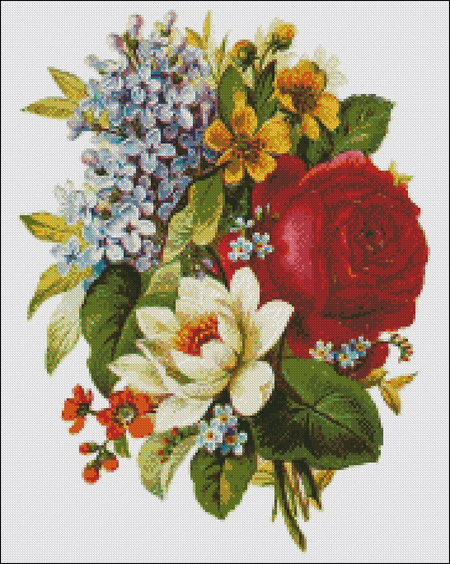 Flowers 162 - Counted Cross Stitch Patterns Embroidery Crafts Needlework DIY Chart DMC Color