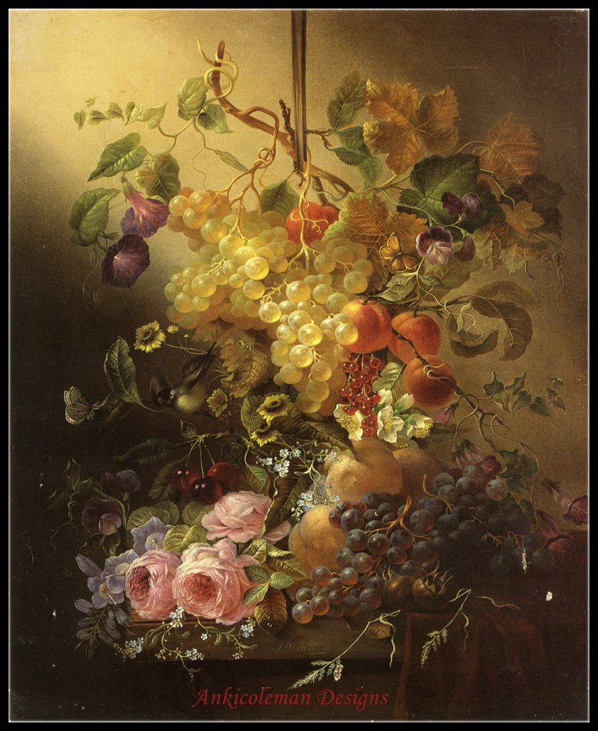 Flowers, Fruit and a Bird - Counted Cross Stitch Patterns Embroidery Crafts Needlework DIY Chart DMC Color