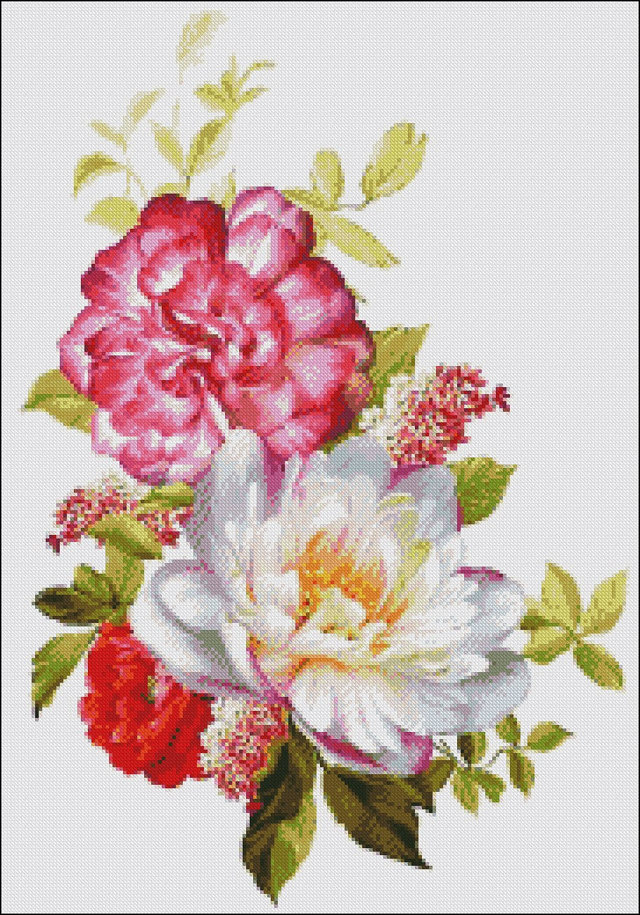 Flowers in Full Bloom - Counted Cross Stitch Patterns Embroidery Crafts Needlework DIY Chart DMC Color