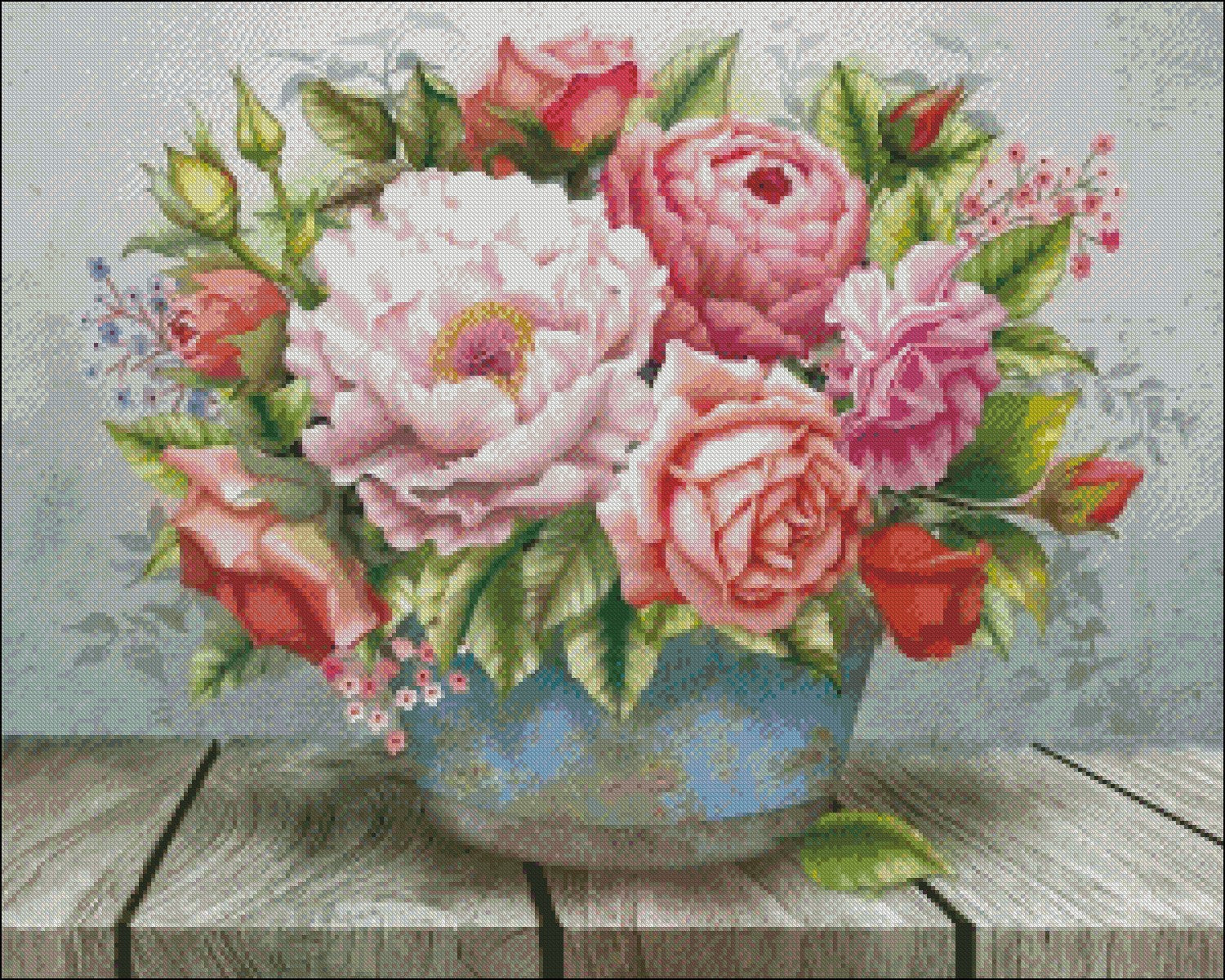 Flowers in the Bucket - Counted Cross Stitch Patterns Embroidery Crafts Needlework DIY Chart DMC Color