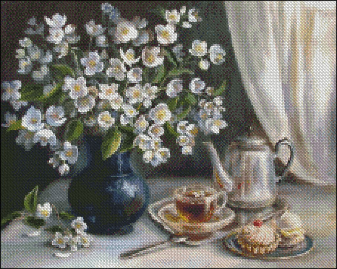 Flowers in Vase 1 - Counted Cross Stitch Patterns Embroidery Crafts Needlework DIY Chart DMC Color