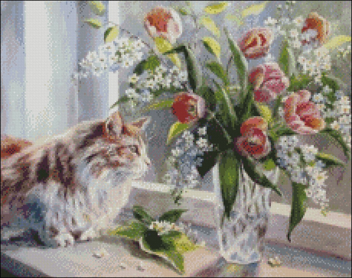 Flowers in Vase 5 - Counted Cross Stitch Patterns Embroidery Crafts Needlework DIY Chart DMC Color