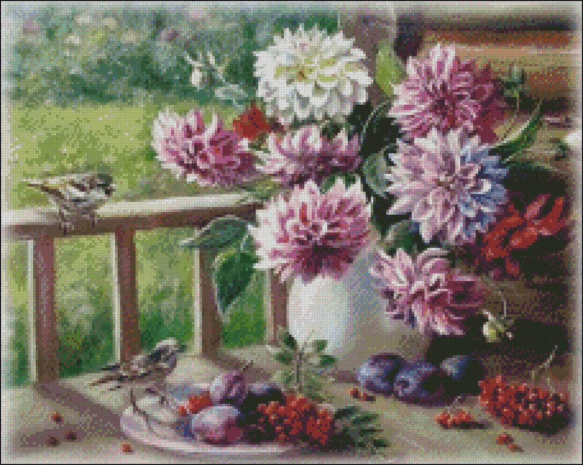 Flowers in Vase 7 - Counted Cross Stitch Patterns Embroidery Crafts Needlework DIY Chart DMC Color