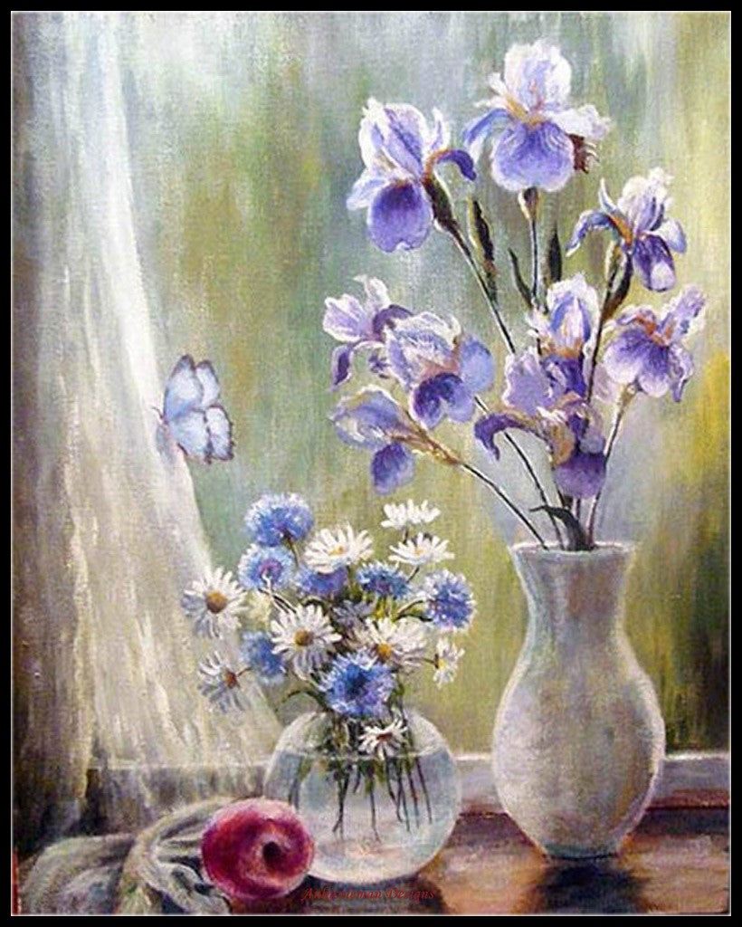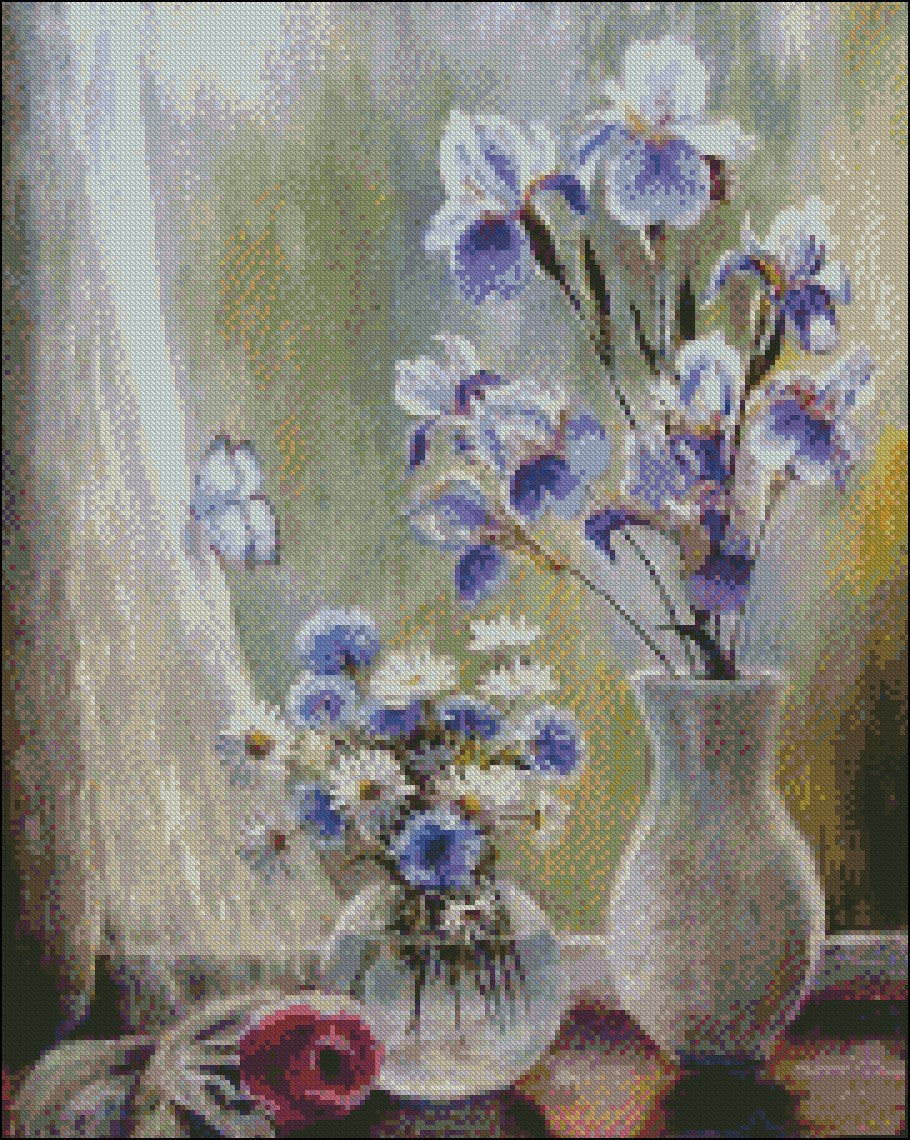 Flowers in Vase Collection 22 - Counted Cross Stitch Patterns Embroidery Crafts Needlework DIY Chart DMC Color