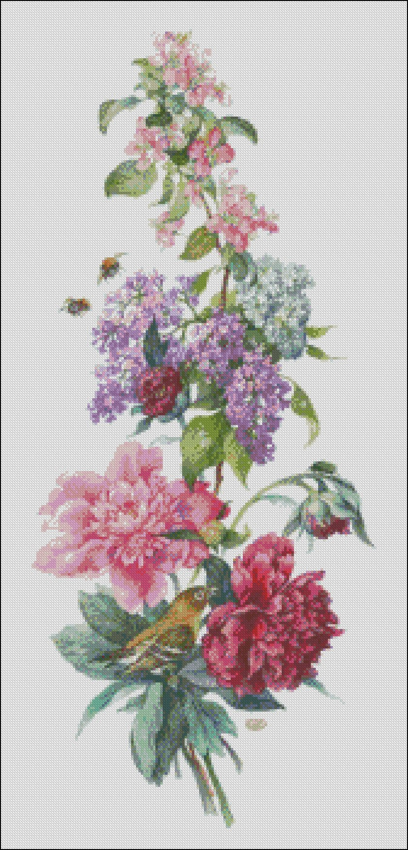 Flowers Vertical Banner 15 - Counted Cross Stitch Patterns Embroidery Crafts Needlework DIY Chart DMC Color