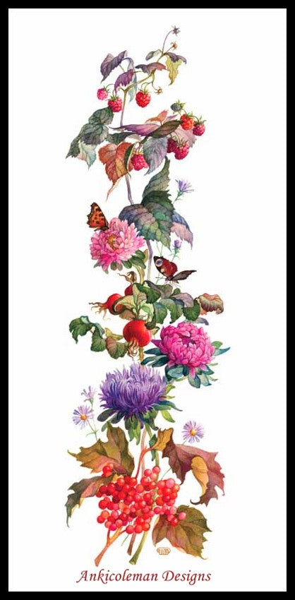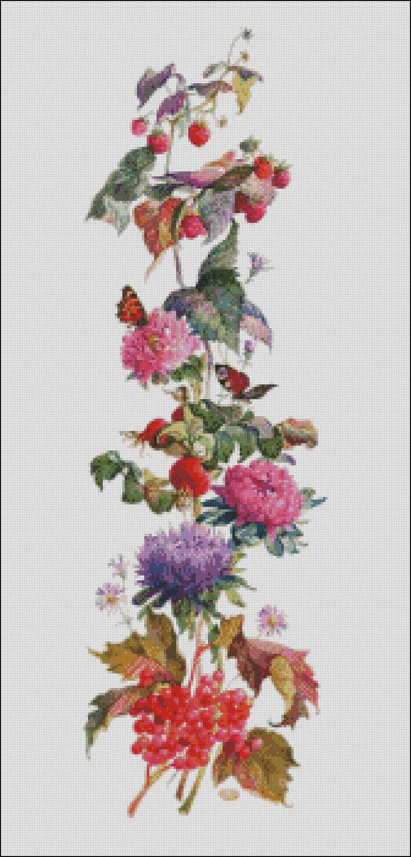 Flowers Vertical Banner 5 - Counted Cross Stitch Patterns Embroidery Crafts Needlework DIY Chart DMC Color