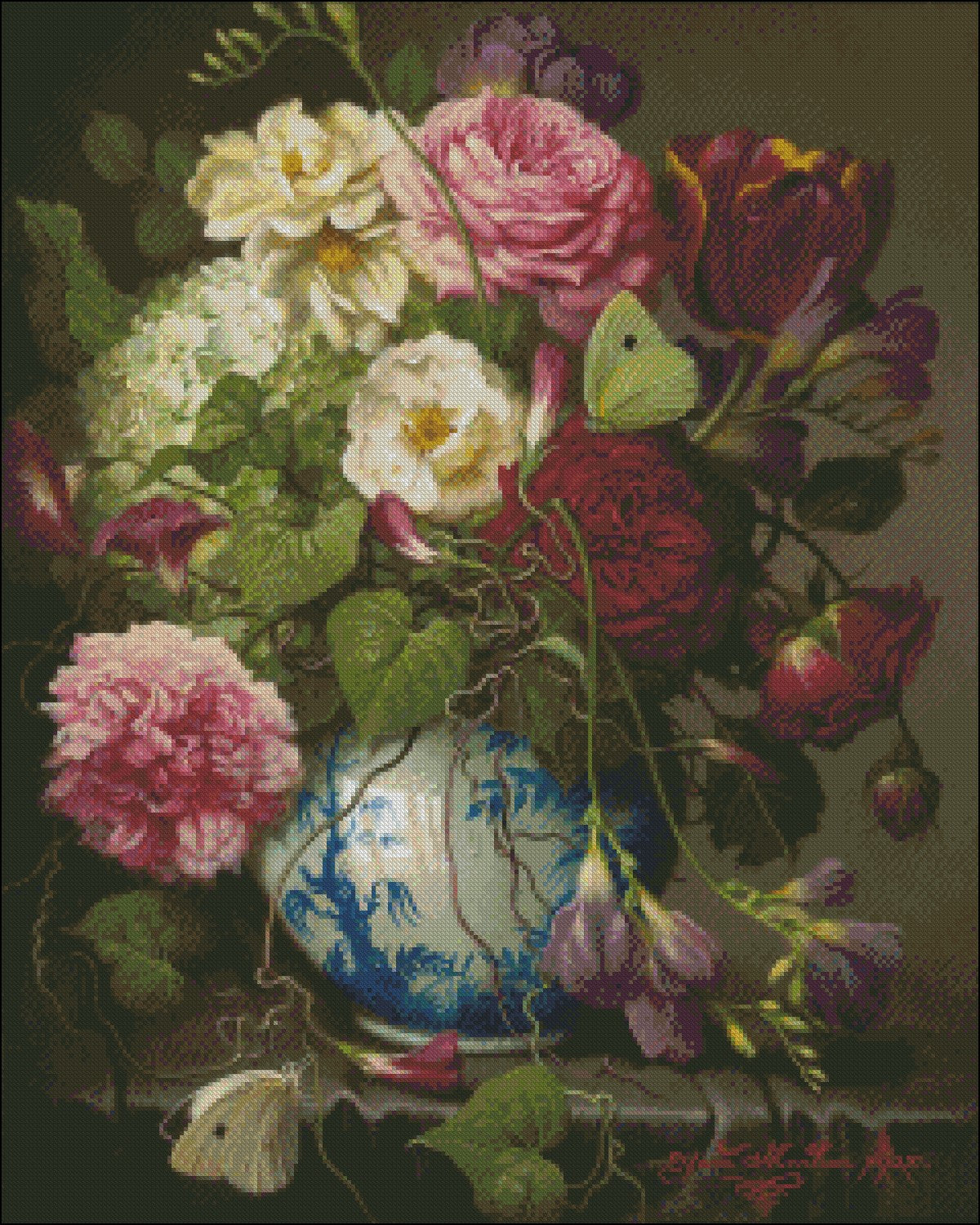 Flowers with Asian Vase - Counted Cross Stitch Patterns Embroidery Crafts Needlework DIY Chart DMC Color