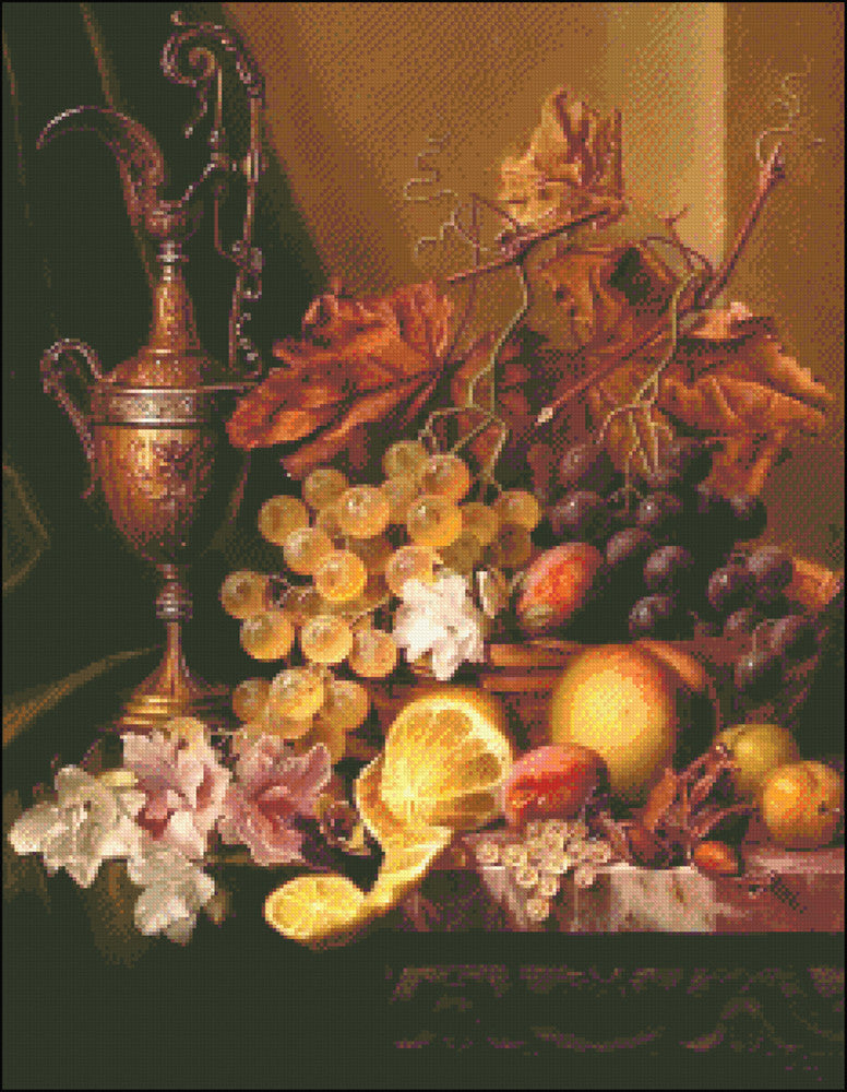 Grapes lemons and peaches - Counted Cross Stitch Patterns Embroidery Crafts Needlework DIY Chart DMC Color