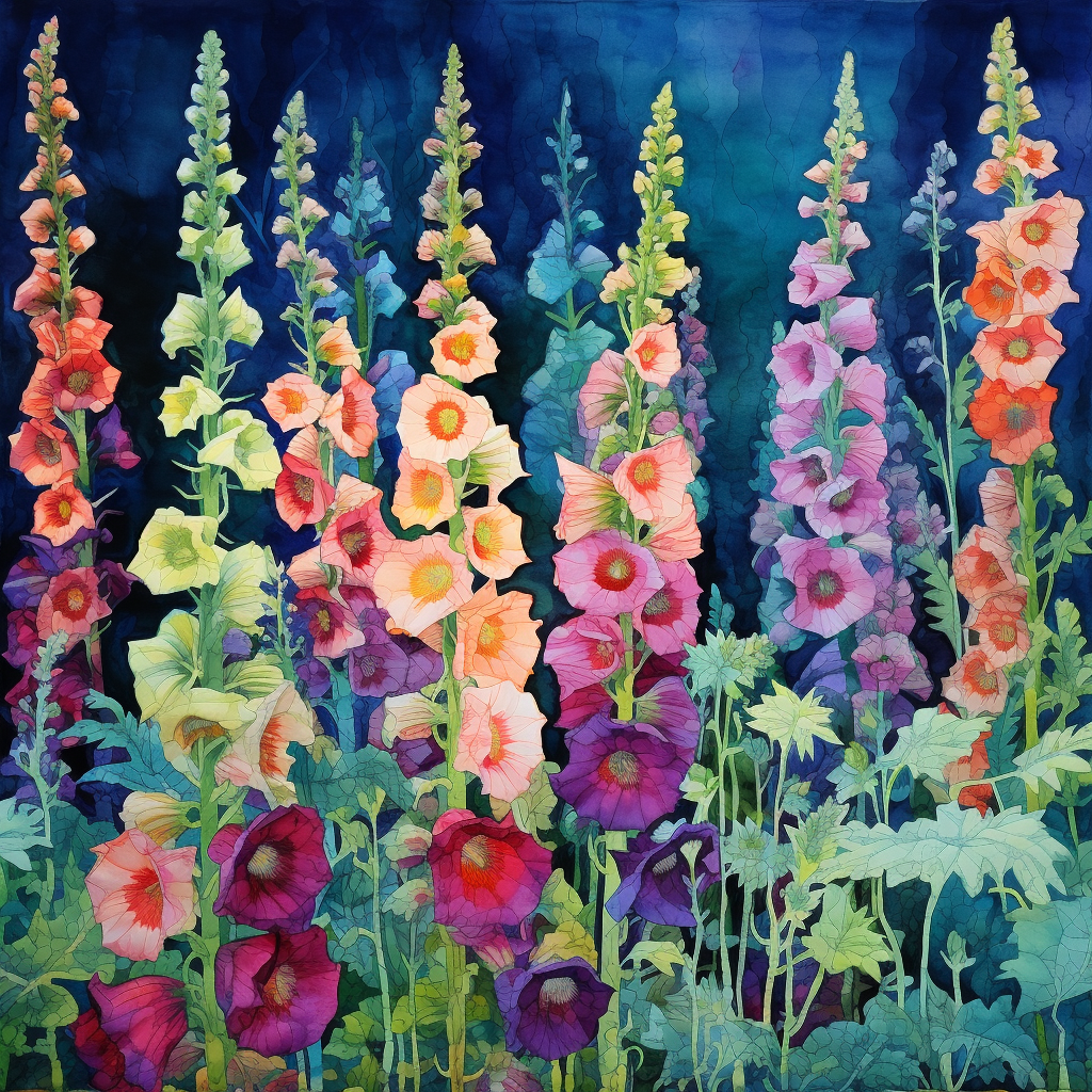 Hollyhocks Row Cool 5 - Counted Cross Stitch Patterns Embroidery Crafts Needlework DIY Chart DMC Color