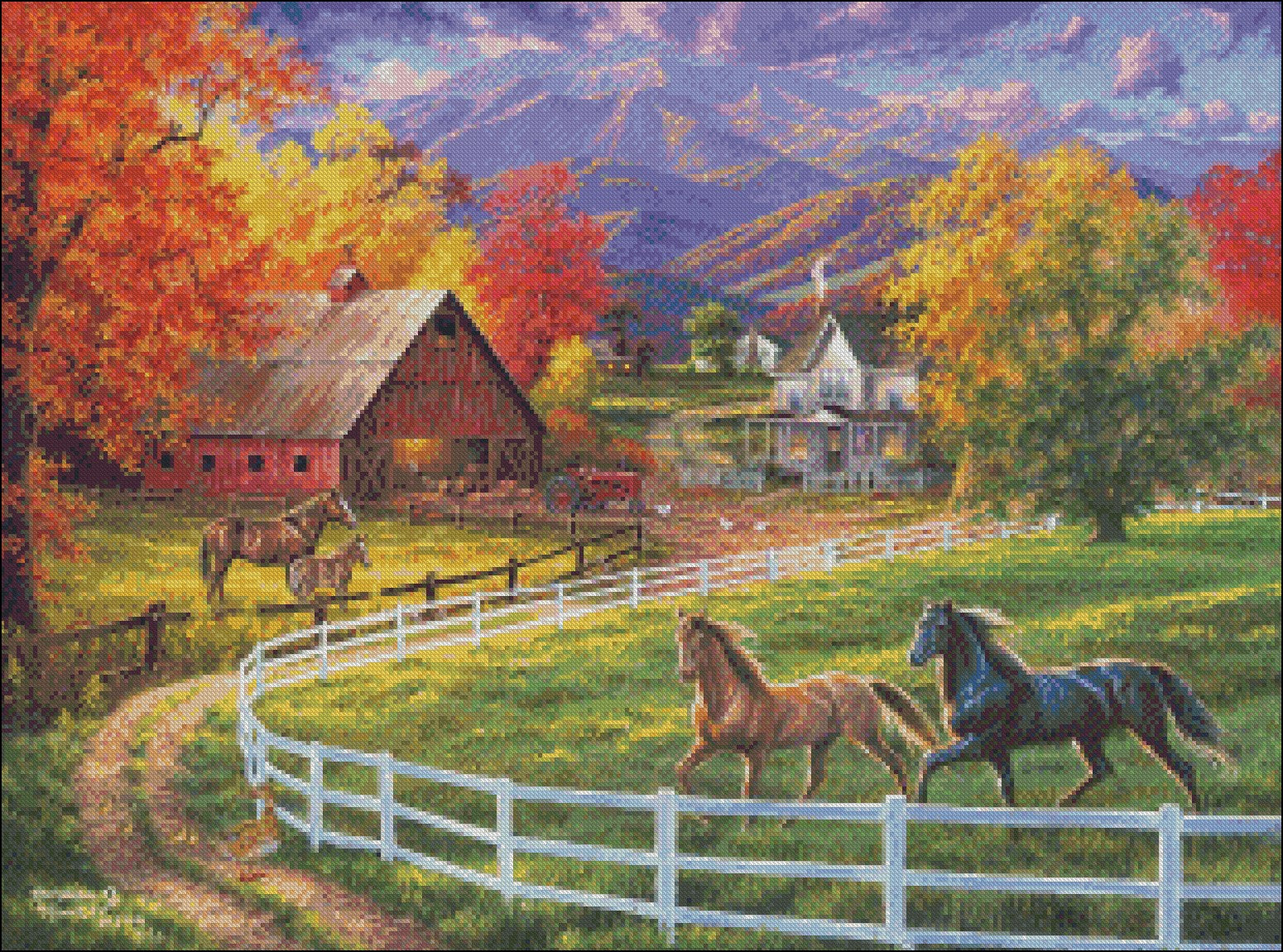 Horse Valley Farm - Counted Cross Stitch Patterns Embroidery Crafts Needlework DIY Chart DMC Color