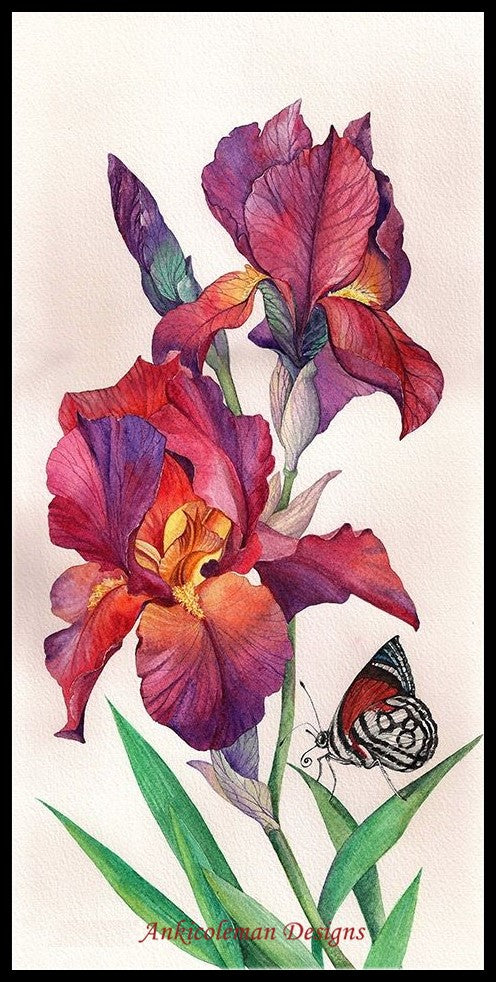 Iris and Butterfly - Counted Cross Stitch Patterns Embroidery Crafts Needlework DIY Chart DMC Color
