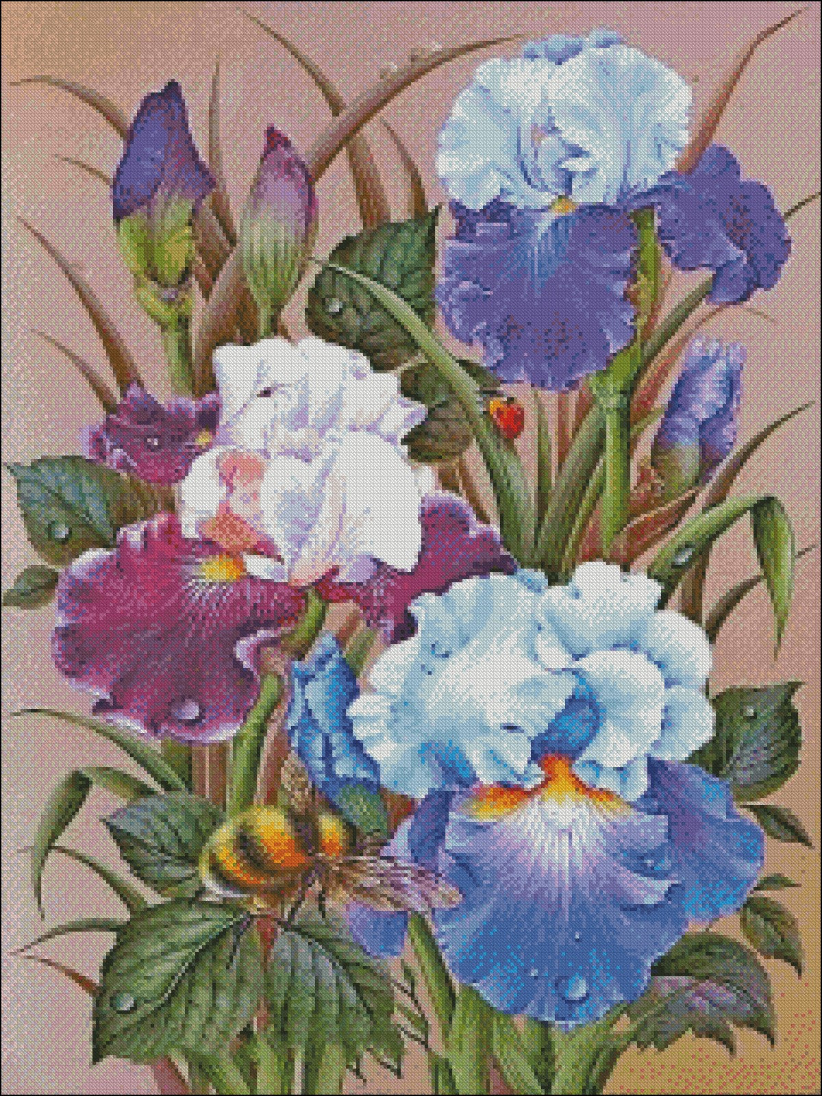Iris and Wasp - Counted Cross Stitch Patterns Embroidery Crafts Needlework DIY Chart DMC Color