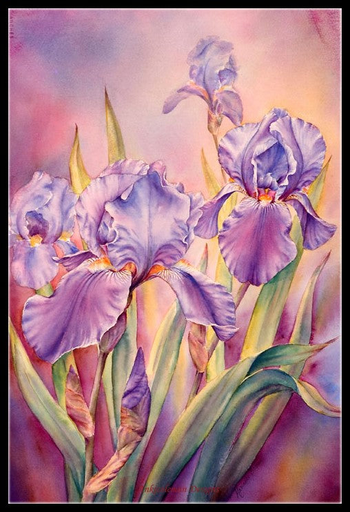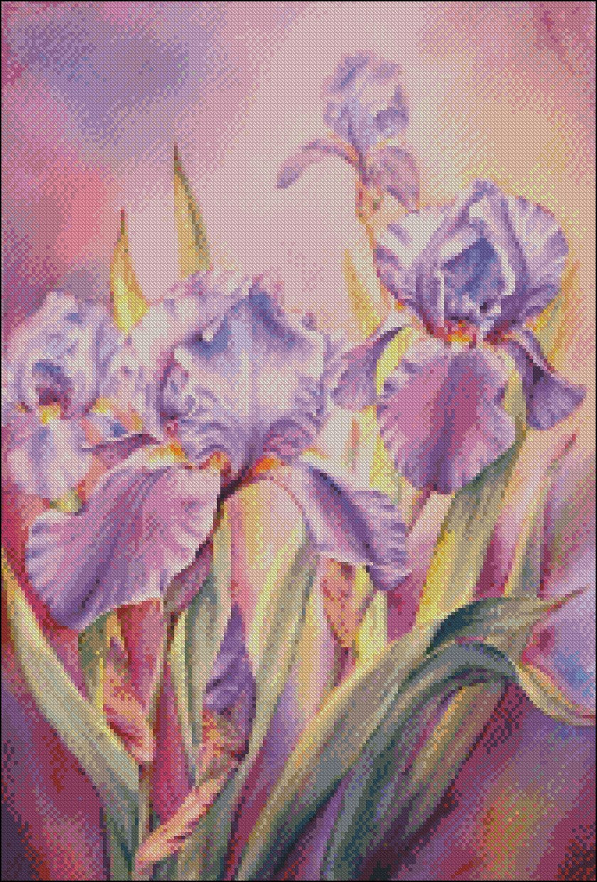 Irises at Dawn - Counted Cross Stitch Patterns Embroidery Crafts Needlework DIY Chart DMC Color