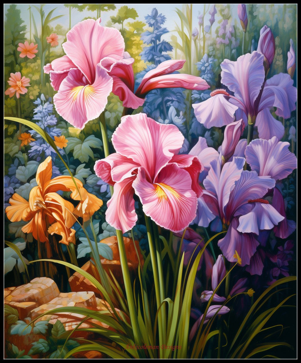Irises Garden 2 - Counted Cross Stitch Patterns Embroidery Crafts Needlework DIY Chart DMC Color