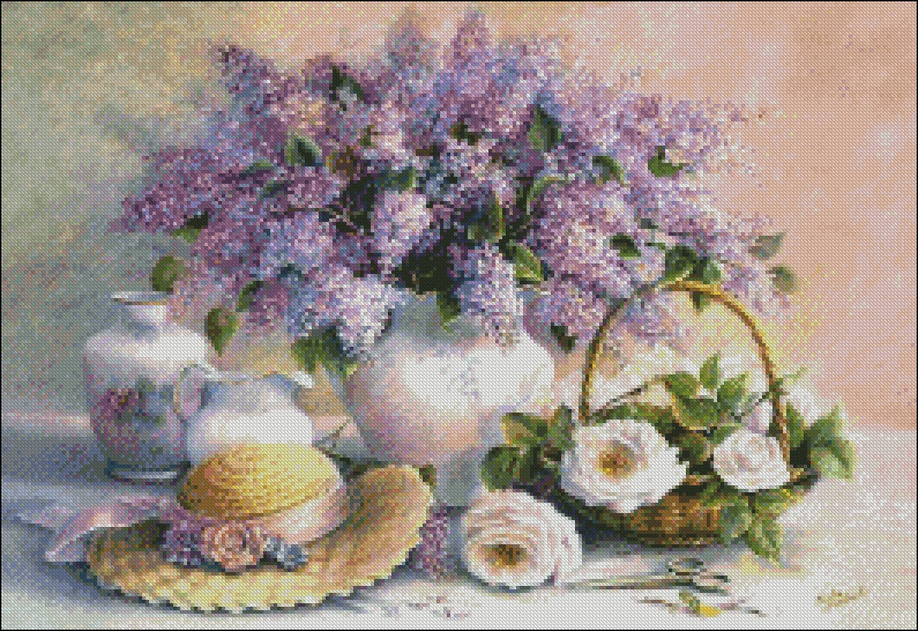 Lavender - Counted Cross Stitch Patterns Embroidery Crafts Needlework DIY Chart DMC Color