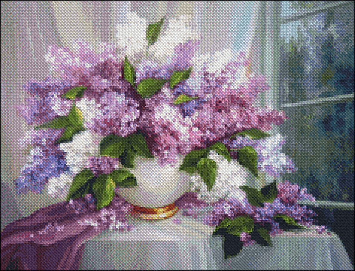Lilac by the window - Counted Cross Stitch Patterns Embroidery Crafts Needlework DIY Chart DMC Color