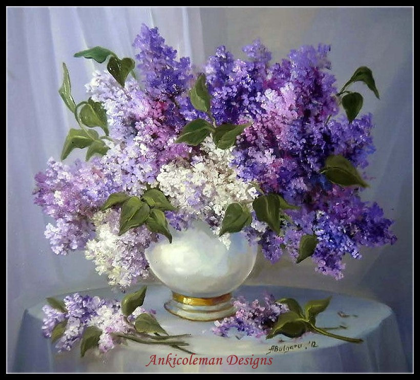 Lilacs in a Vase I - Counted Cross Stitch Patterns Embroidery Crafts Needlework DIY Chart DMC Color