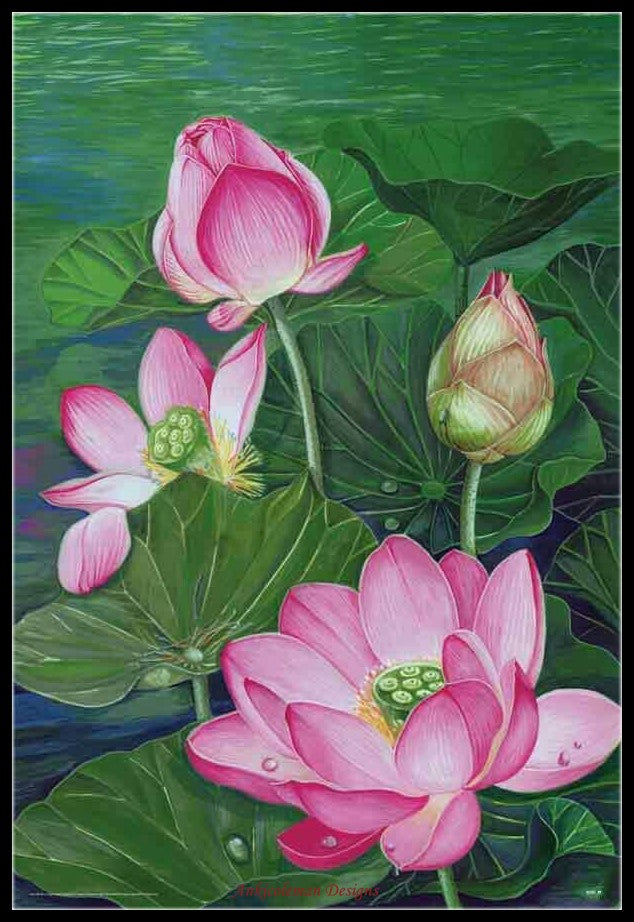 Lotus Pond - Counted Cross Stitch Patterns Embroidery Crafts Needlework DIY Chart DMC Color
