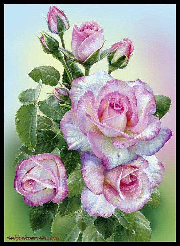 Morning Roses - Counted Cross Stitch Patterns Embroidery Crafts Needlework DIY Chart DMC Color