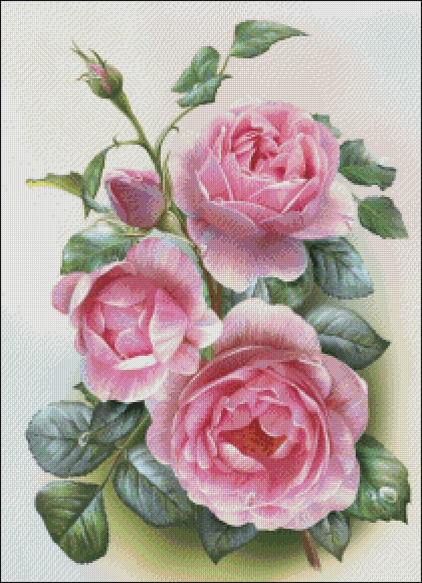 Morning Roses II - Counted Cross Stitch Patterns Embroidery Crafts Needlework DIY Chart DMC Color