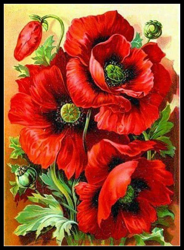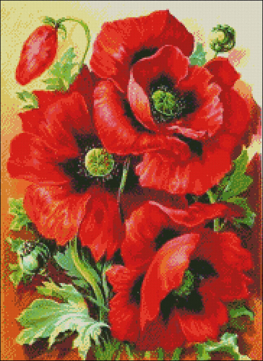 Oriental Red Poppy - Counted Cross Stitch Patterns Embroidery Crafts Needlework DIY Chart DMC Color