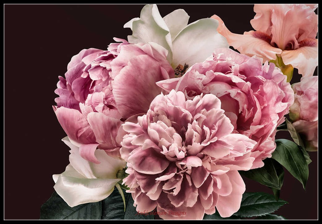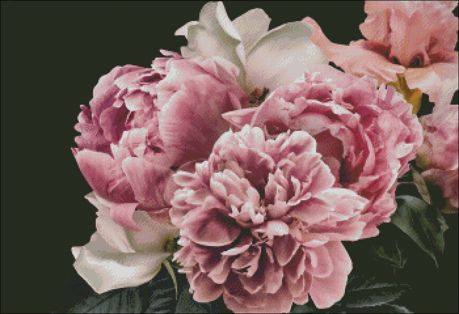 Pastel Pink Peonies - Counted Cross Stitch Patterns Embroidery Crafts Needlework DIY Chart DMC Color