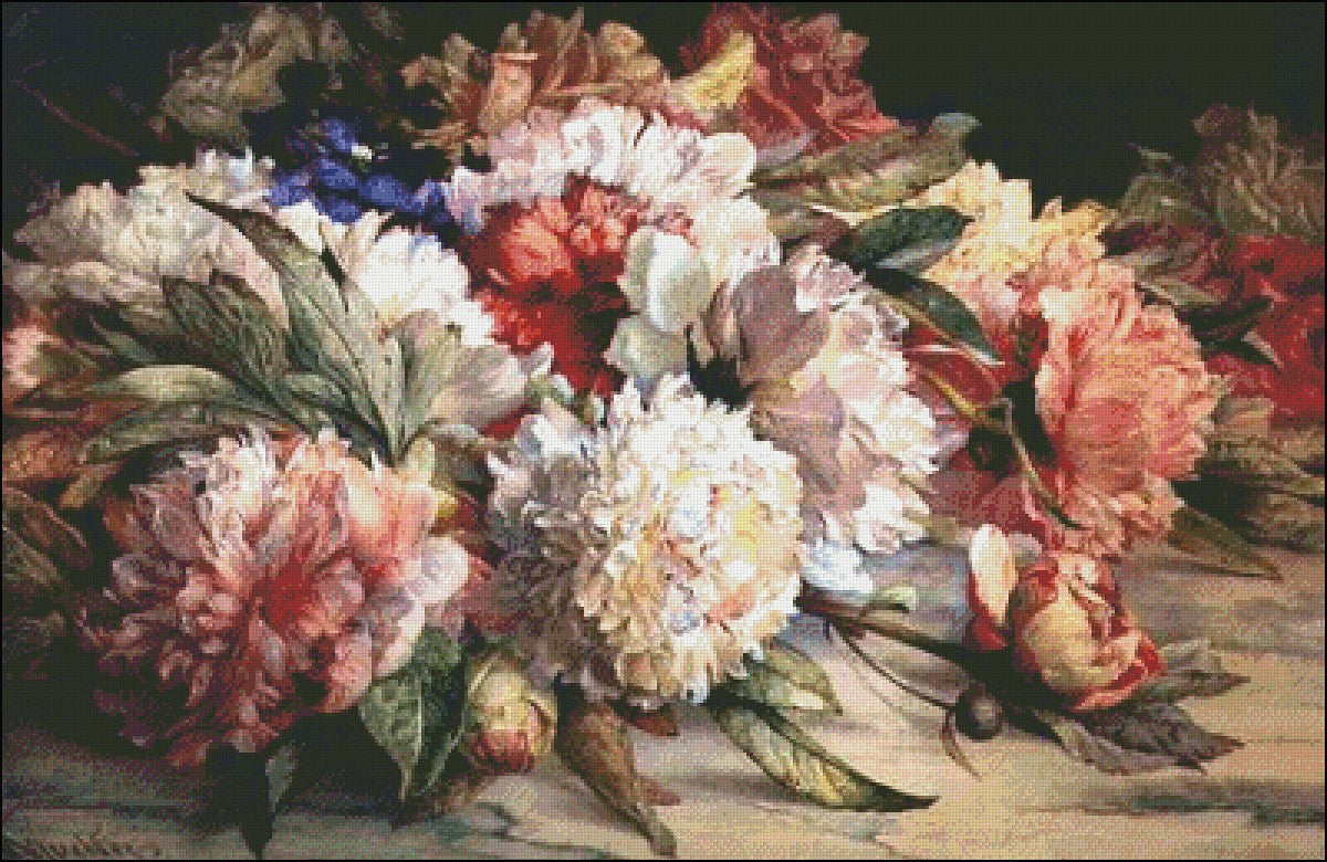 Peonies 2- Counted Cross Stitch Patterns Embroidery Crafts Needlework DIY Chart DMC Color