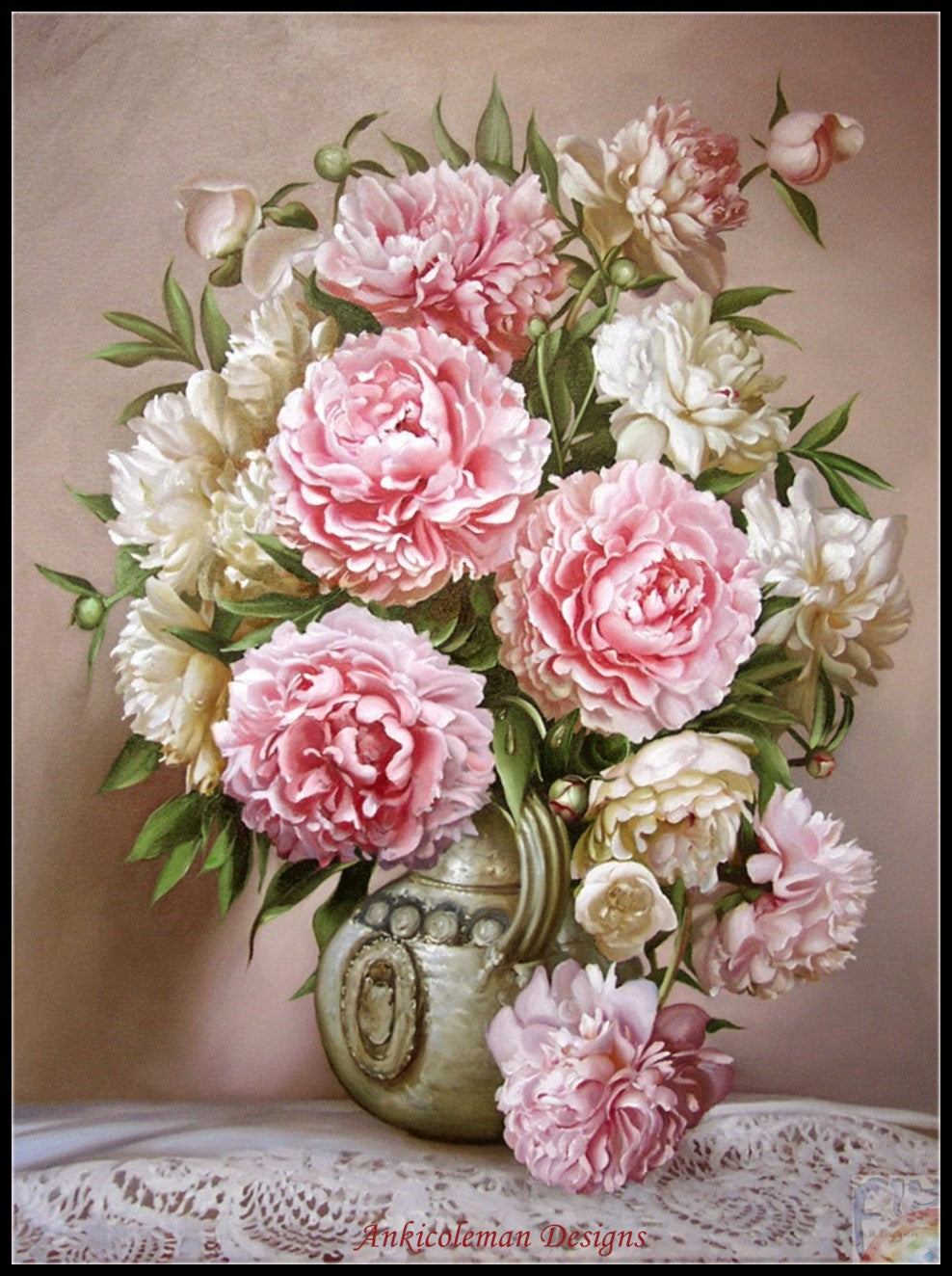 Peony Flowers IV - Counted Cross Stitch Patterns Embroidery Crafts Needlework DIY Chart DMC Color