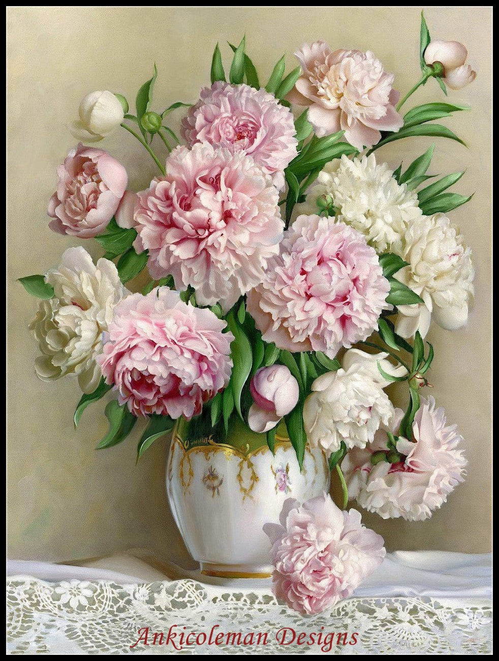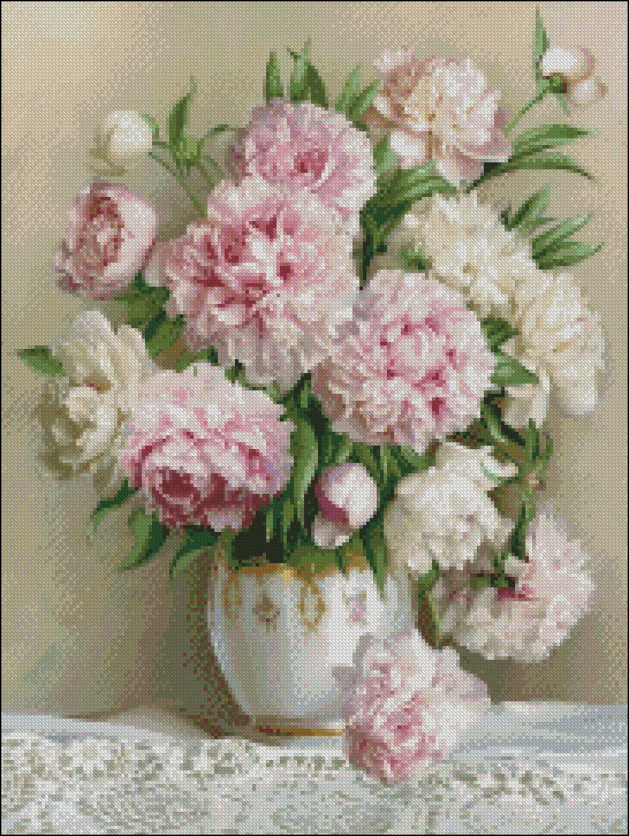 Peony Flowers III - Counted Cross Stitch Patterns Embroidery Crafts Needlework DIY Chart DMC Color