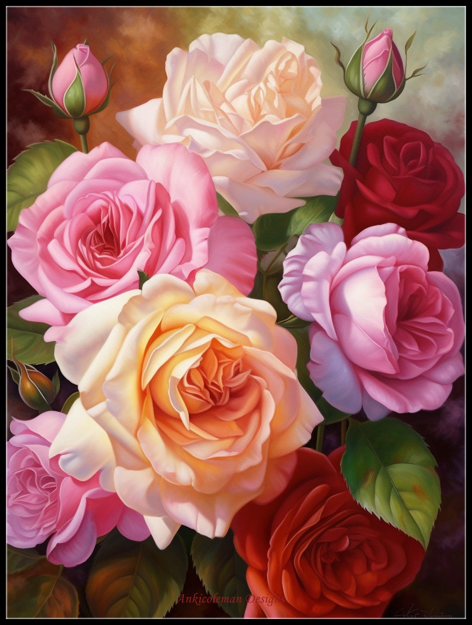 Pink and Red Roses 2 - Counted Cross Stitch Patterns Embroidery Crafts Needlework DIY Chart DMC Color