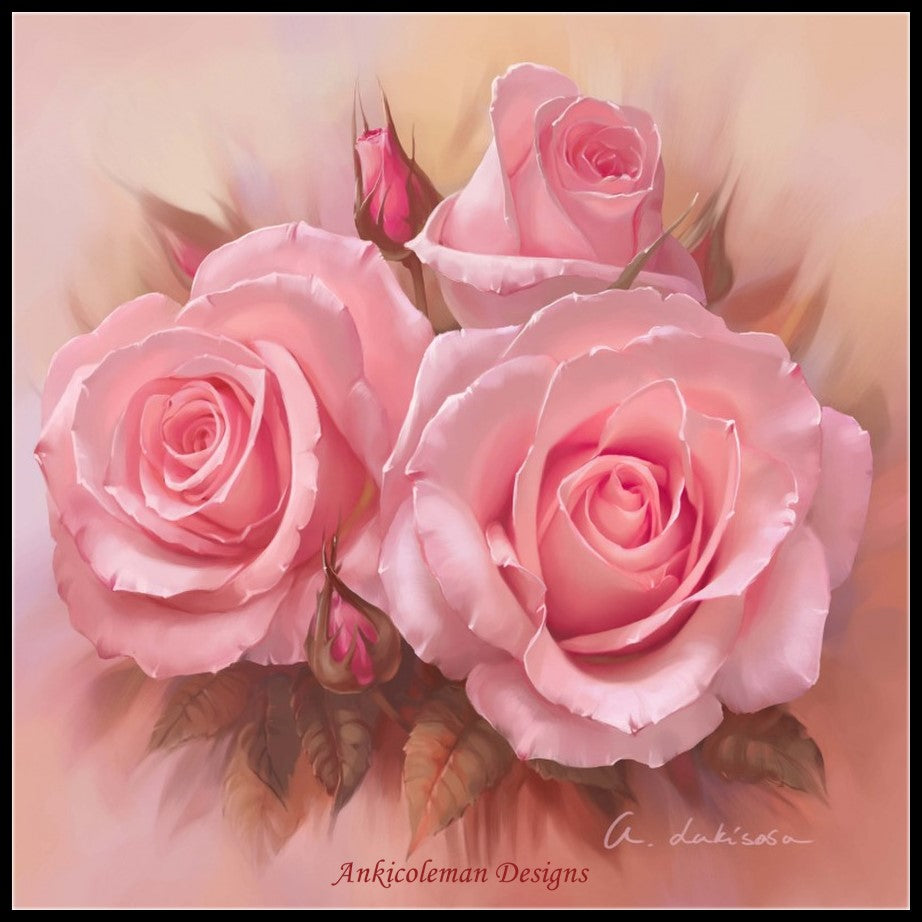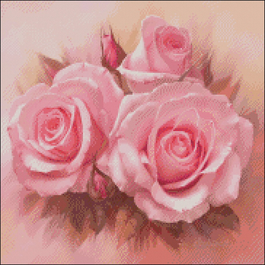 Pink Roses 2 - Counted Cross Stitch Patterns Embroidery Crafts Needlework DIY Chart DMC Color
