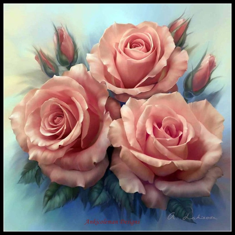 Pink Roses 3 - Counted Cross Stitch Patterns Embroidery Crafts Needlework DIY Chart DMC Color