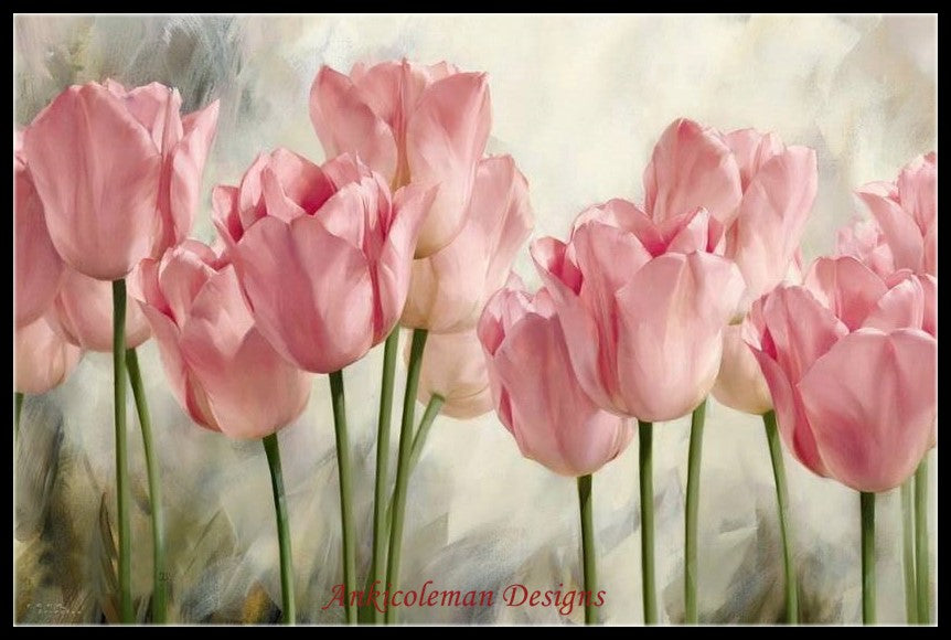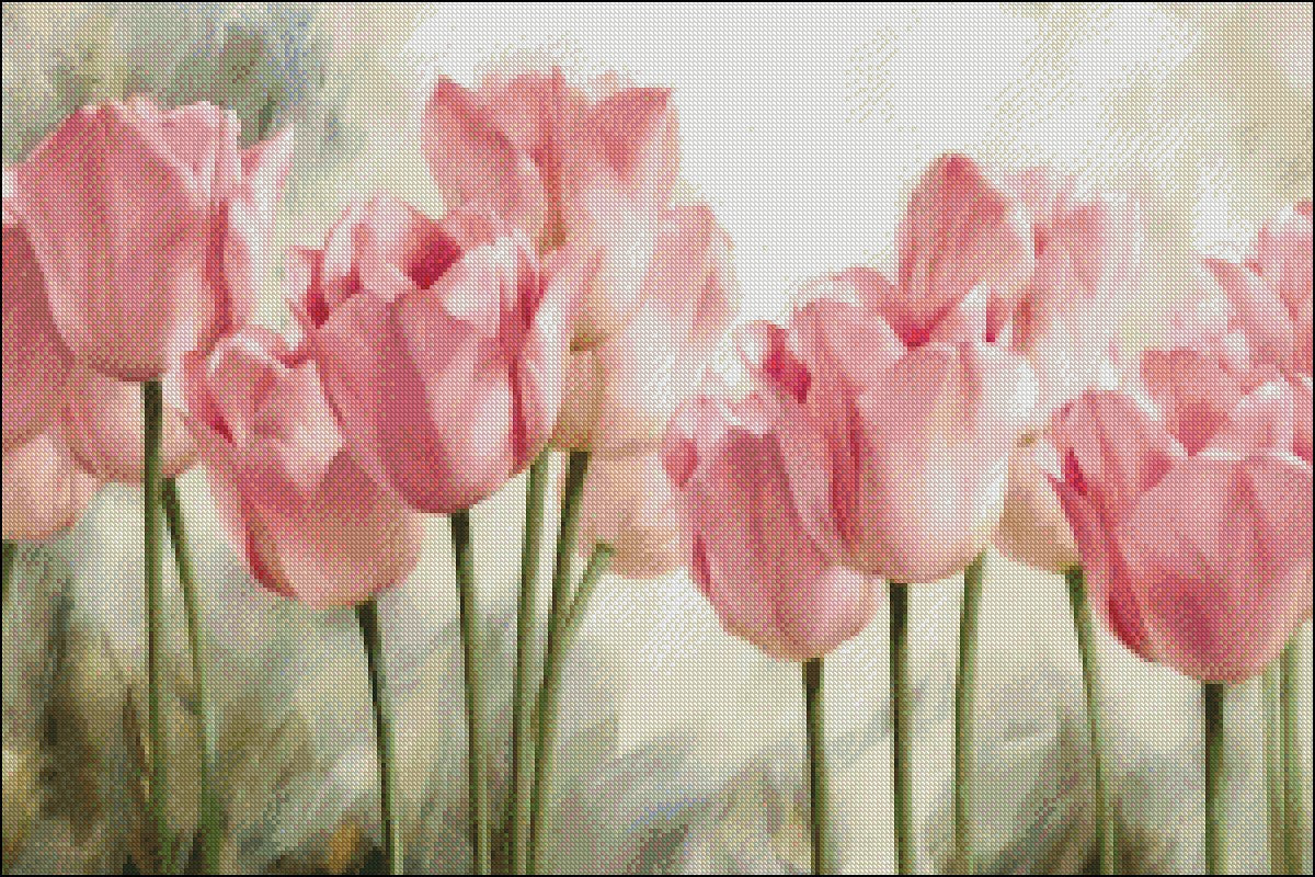 Pink Tulip Flowers - Counted Cross Stitch Patterns Embroidery Crafts Needlework DIY Chart DMC Color