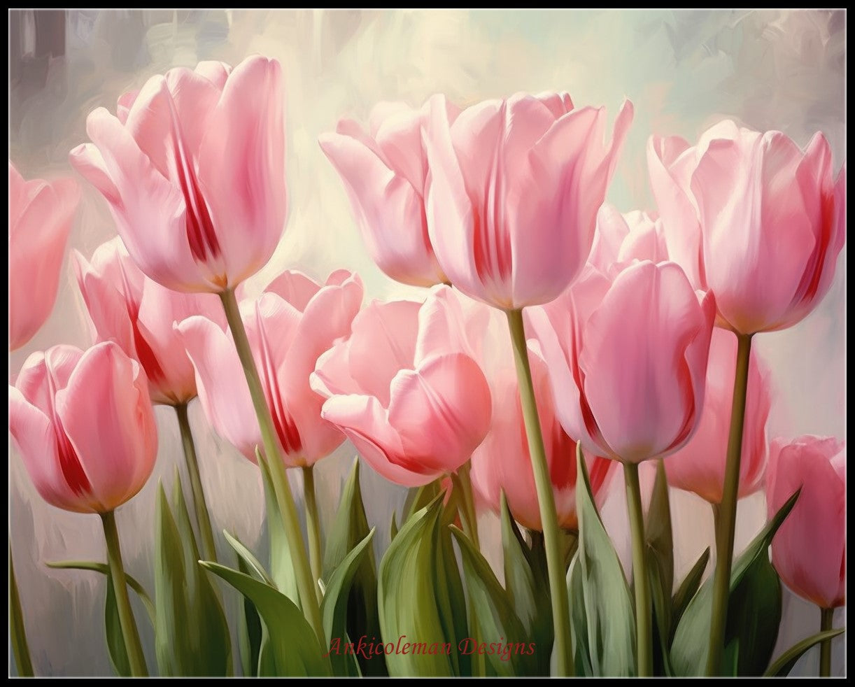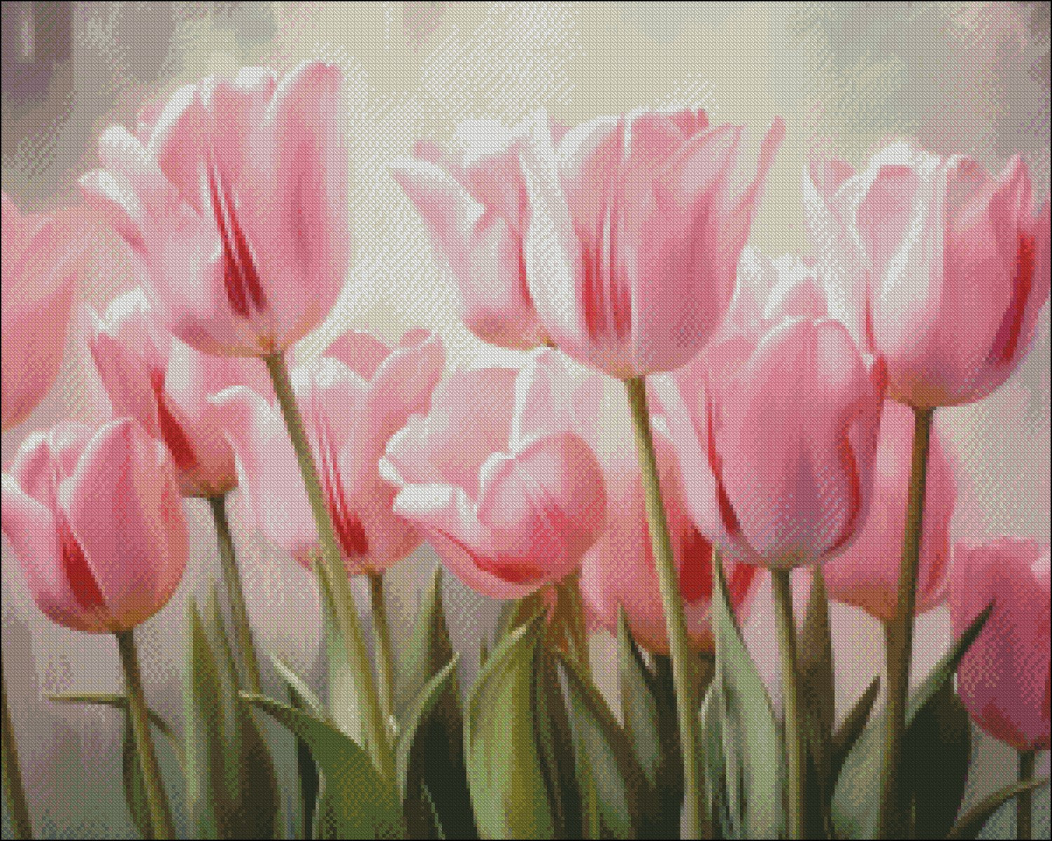 Pink Tulip Flowers 3 - Counted Cross Stitch Patterns Embroidery Crafts Needlework DIY Chart DMC Color