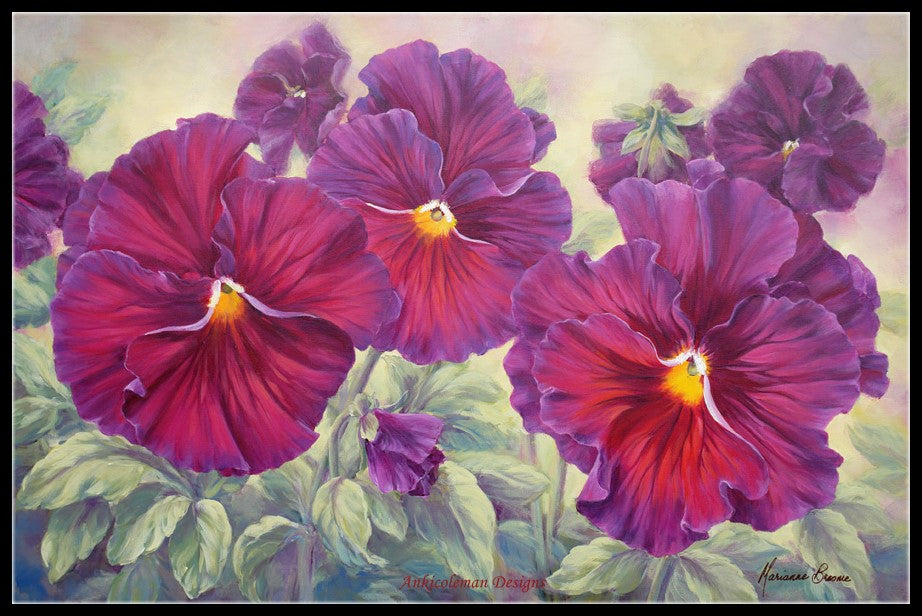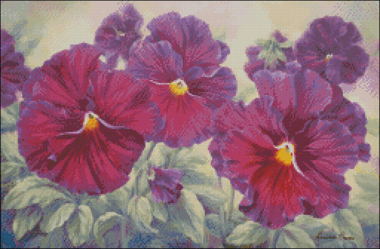 Purple Pansies - Counted Cross Stitch Patterns Embroidery Crafts Needlework DIY Chart DMC Color