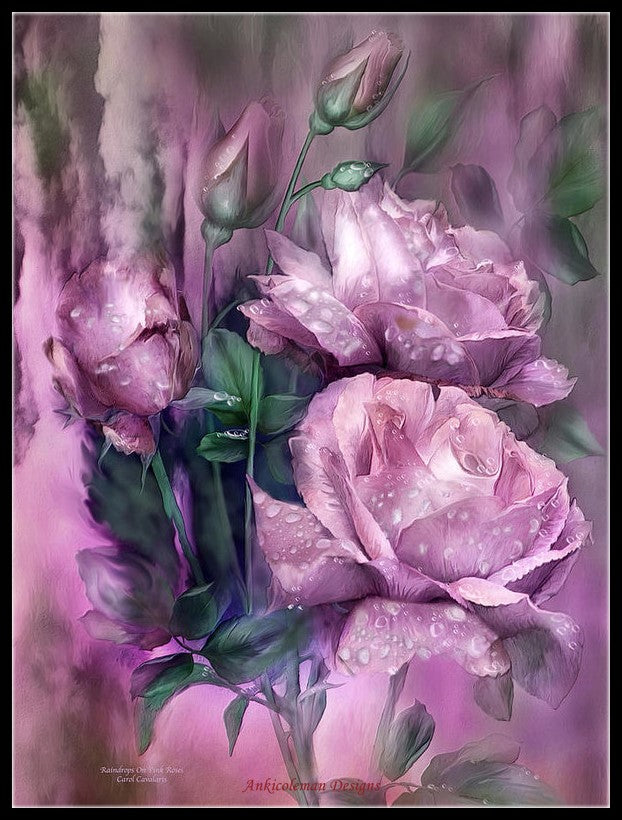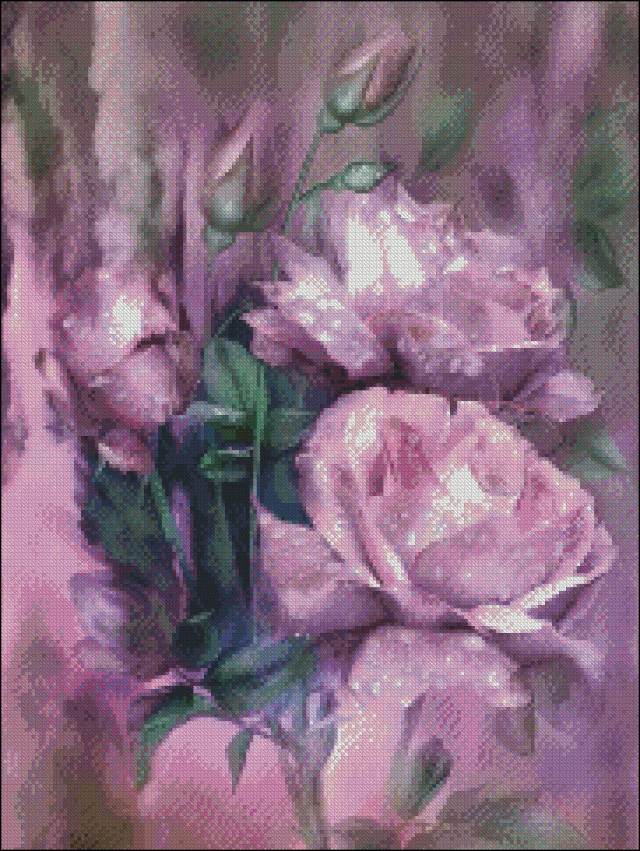 Raindrops on Pink Rose - Counted Cross Stitch Patterns Embroidery Crafts Needlework DIY Chart DMC Color