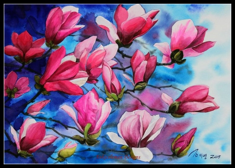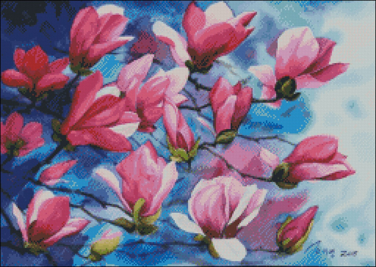 Red Magnolia - Counted Cross Stitch Patterns Embroidery Crafts Needlework DIY Chart DMC Color