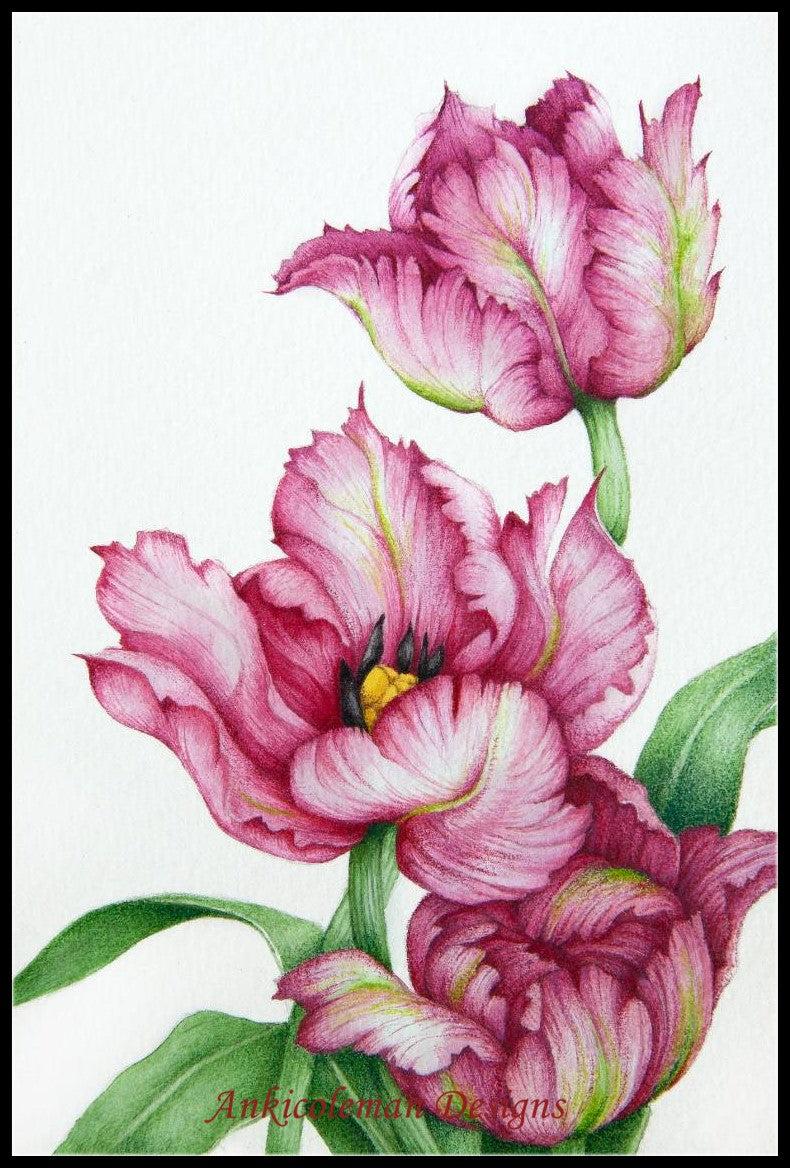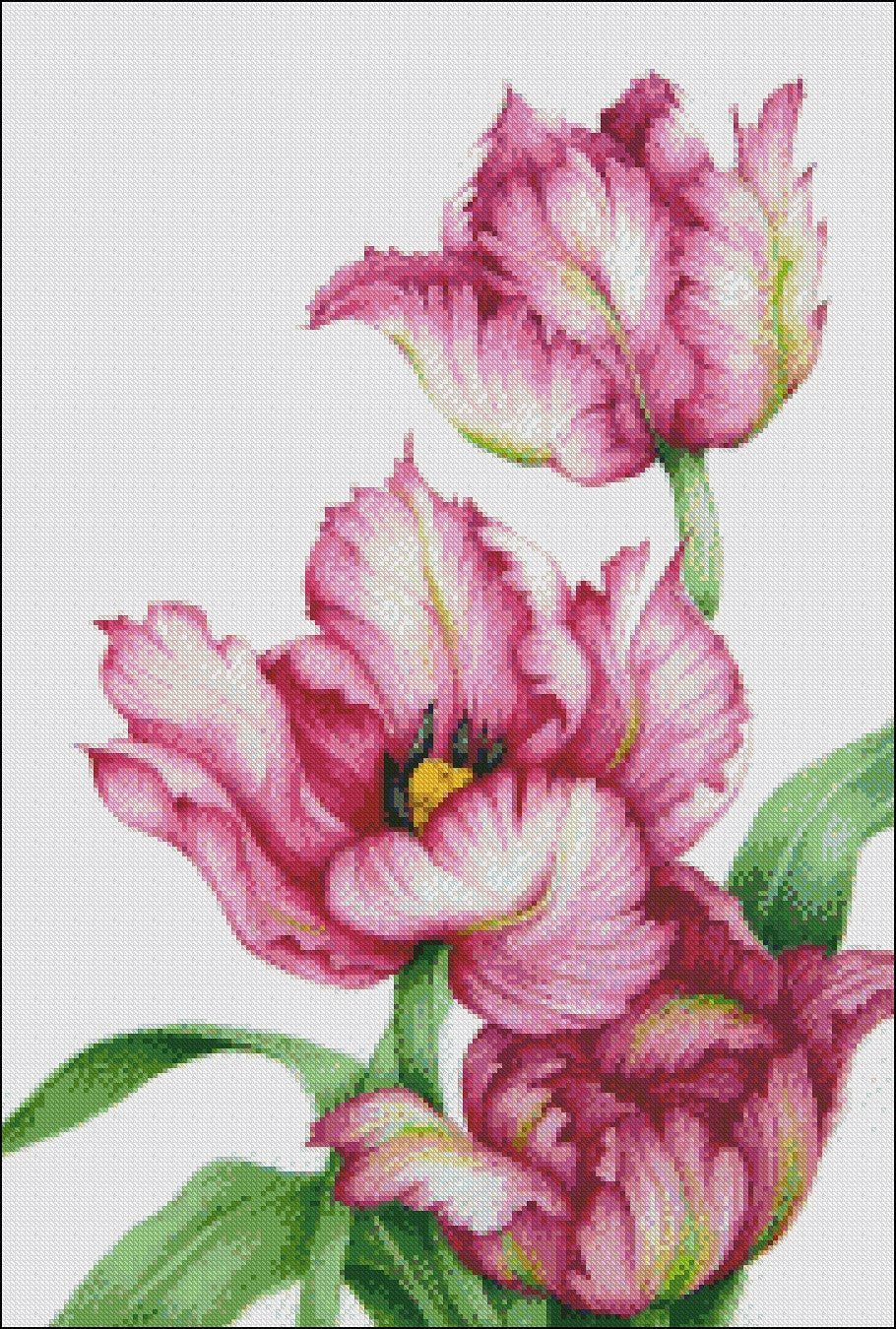 Red Parrot Tulips - Counted Cross Stitch Patterns Embroidery Crafts Needlework DIY Chart DMC Color