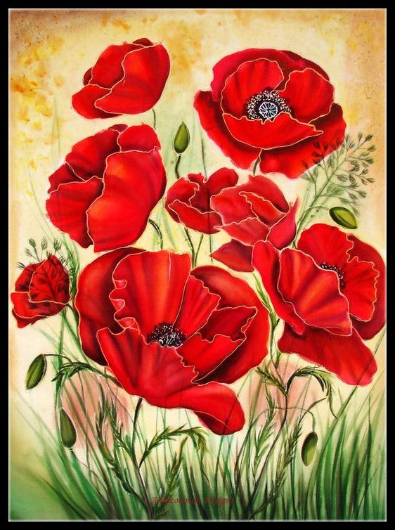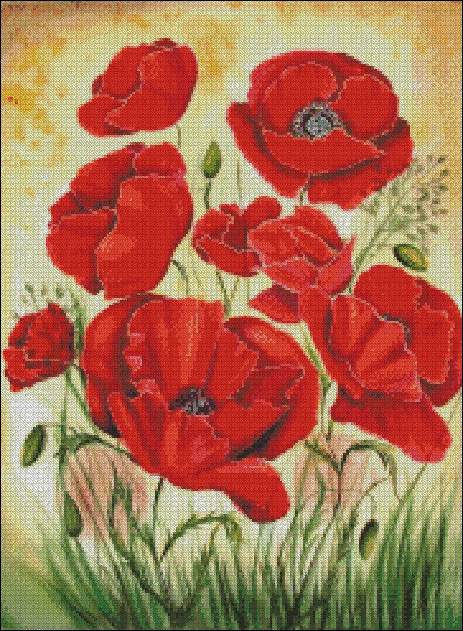 Red Poppy 3 - Counted Cross Stitch Patterns Embroidery Crafts Needlework DIY Chart DMC Color