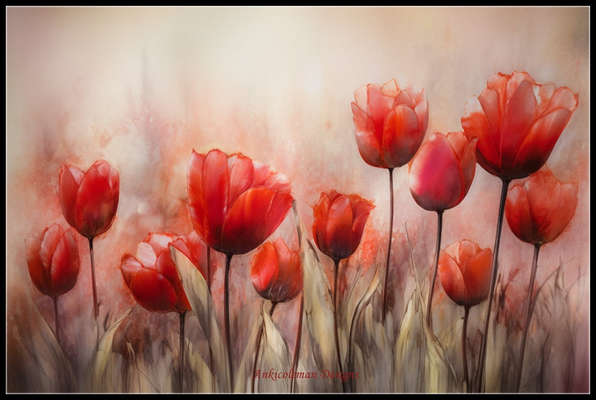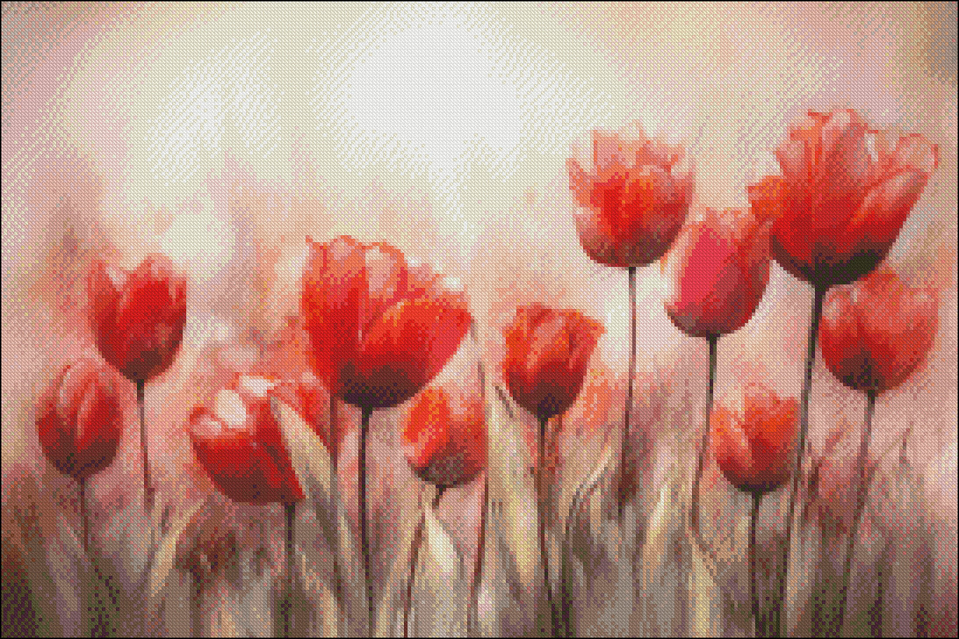Red Tulip Flowers 1 - Counted Cross Stitch Patterns Embroidery Crafts Needlework DIY Chart DMC Color