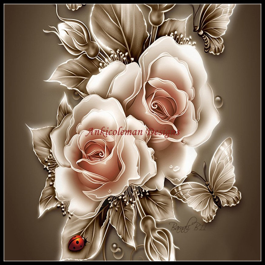Rose & Butterfly - Counted Cross Stitch Patterns Embroidery Crafts Needlework DIY Chart DMC Color
