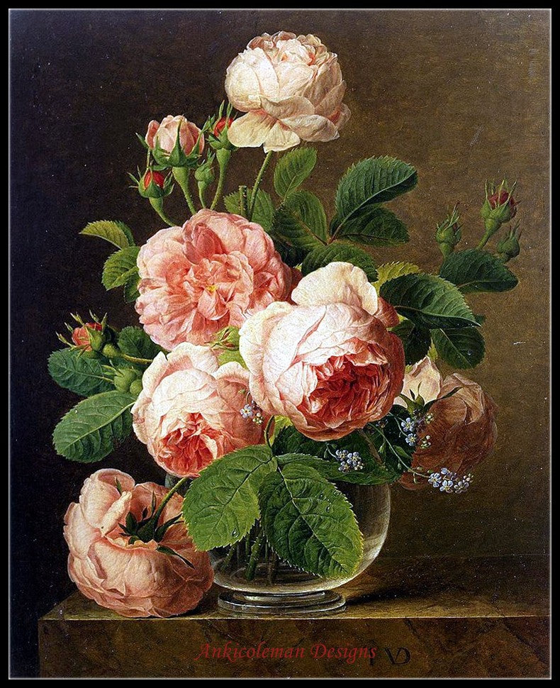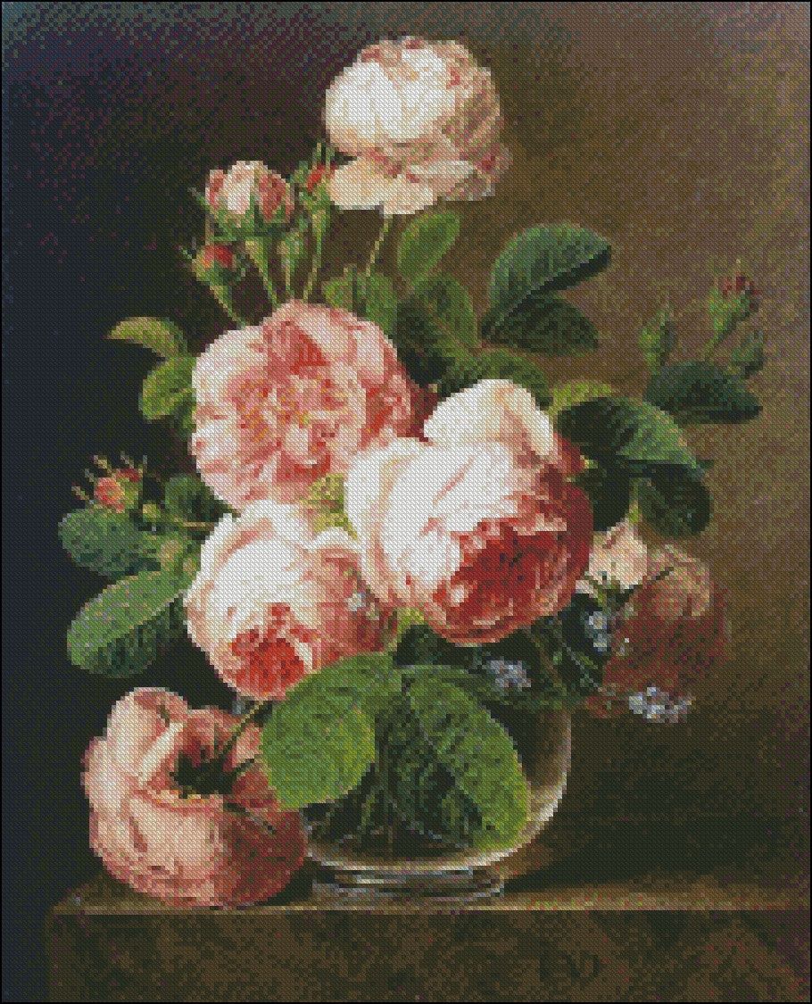 Roses in a Glass Vase - Counted Cross Stitch Patterns Embroidery Crafts Needlework DIY Chart DMC Color